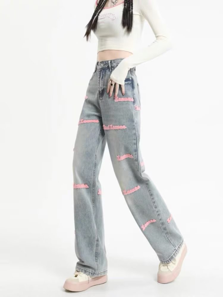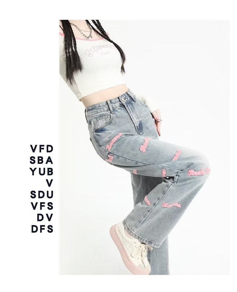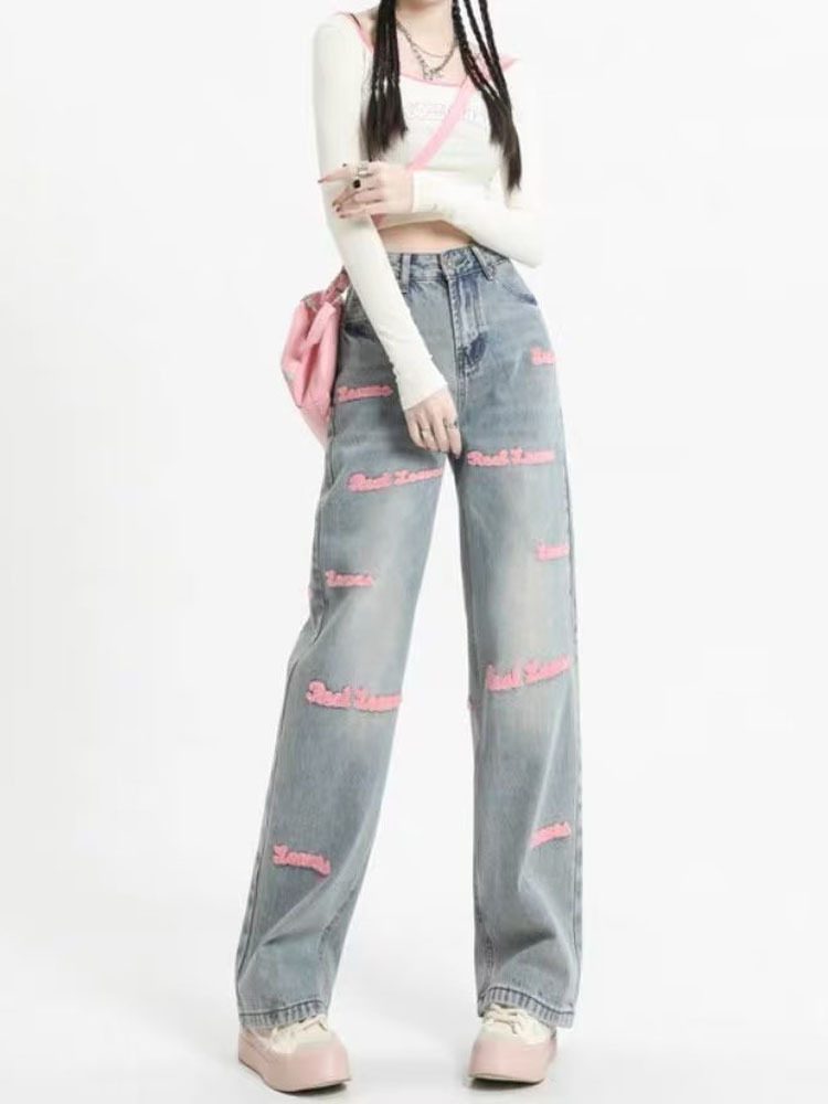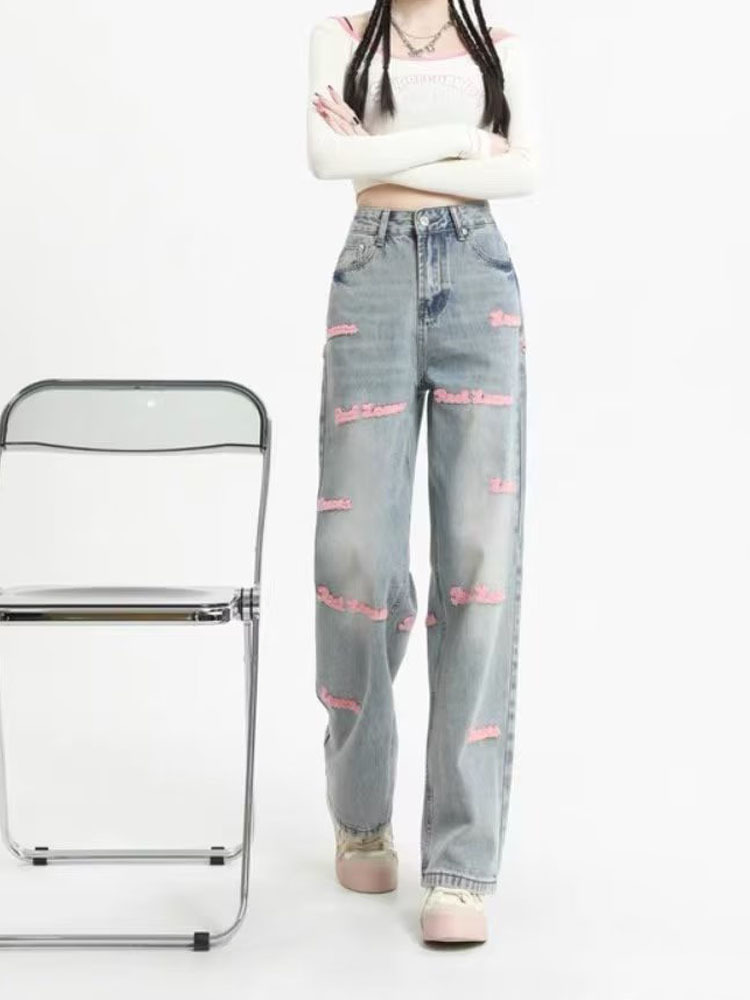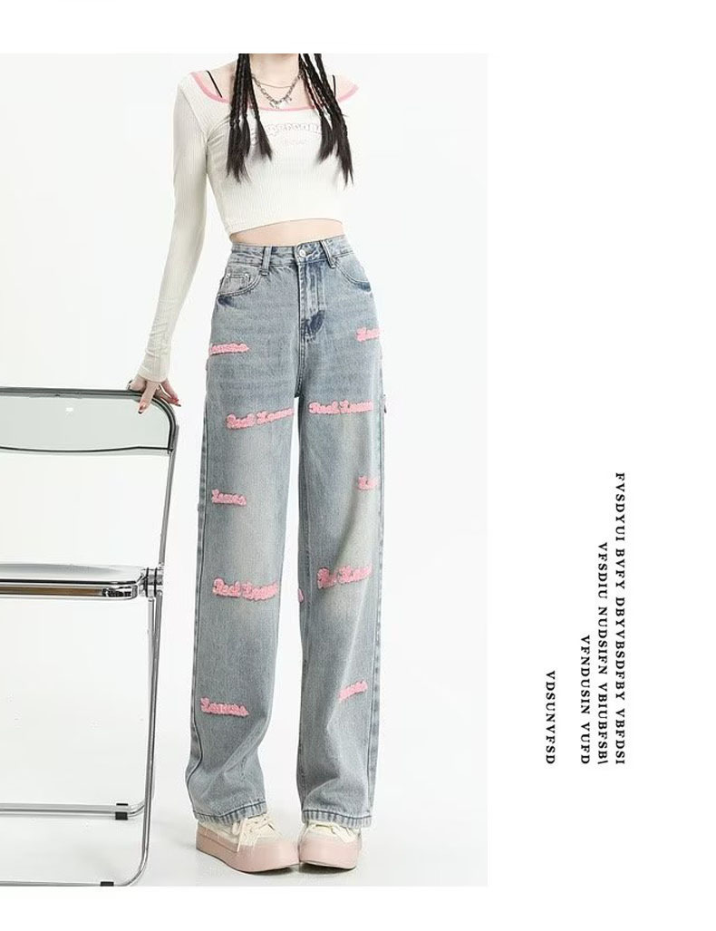 Step into style with our European Letter Embroidered Straight Jeans Design!