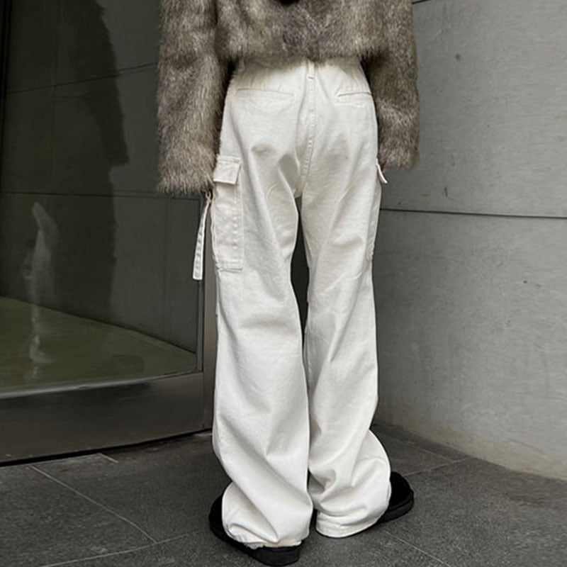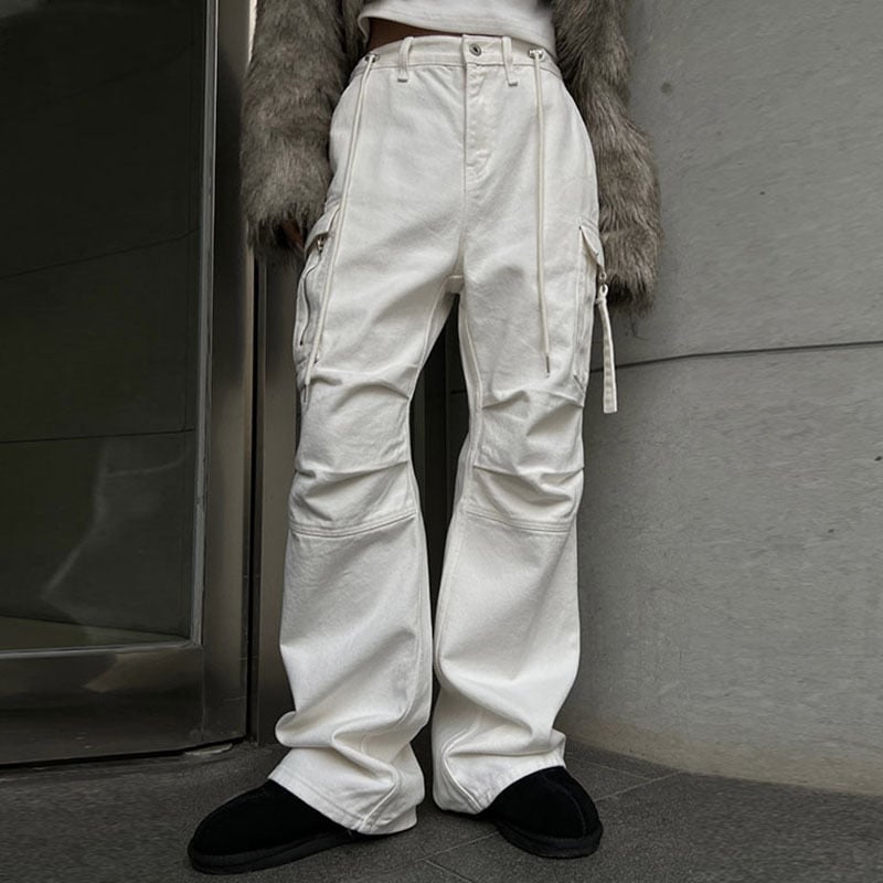 Available in classic black and white, these jeans feature a practical multi-pocket design, allowing you to keep your essentials close at hand. No more fumbling through your bag—everything you need is right where you want it.