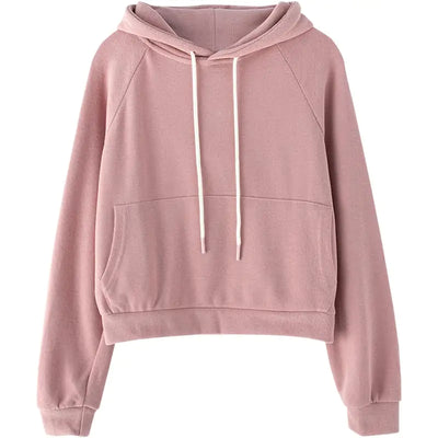 Cropped Hooded Sweater Jacket for Women in Solid Color