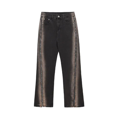 Distressed Retro Straight-leg Jeans with Side Zips