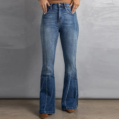 High-Waisted Vintage Wash Color Block Wide-Leg Jeans