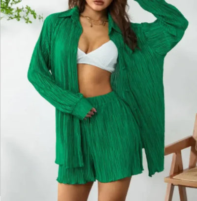 Printed Lapel Shirt & Wide-Leg Pants Set