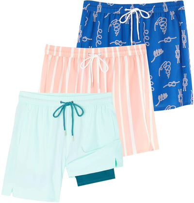 Real Essentials 3 Pack Mens Swim Trunks Bathing Suit Compression Liner Board Shorts Swimwear Swimming Trunk Swimsuit Suits 7 Inch Inseam