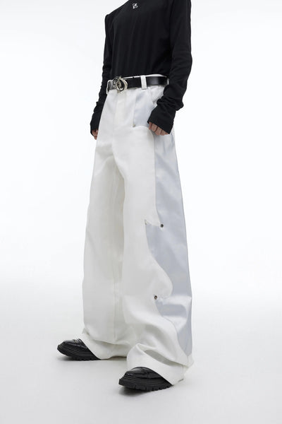 Structured Leather Patchwork Flame Rivet Trousers