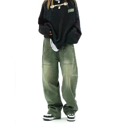 Vintage American Retro Denim Wide Leg Jeans for Men