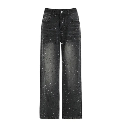 Vintage American Style Rhinestone Wide-Leg Jeans 2024