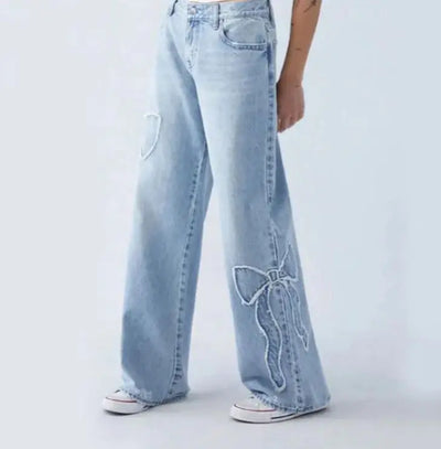 Women's Straight Trousers Embroidered Side Frayed Butterfly Jeans Street Design Hot Girl Baggy Pants