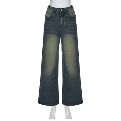 Women's Washed Gradient Retro Mid-Waist Jeans