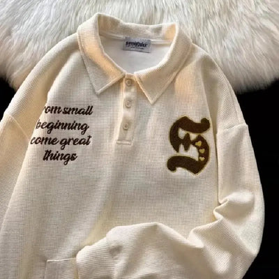 Women's Thin Embroidered Waffle Polo Shirt - Autumn