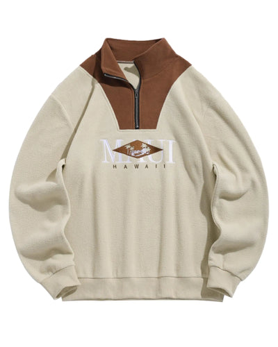 ZAFUL Mens Graphic Fleece Sweatshirts Quarter Zip Pullover Sweatshirt Letter Embroidered Oversized Vintage Hoodie Top