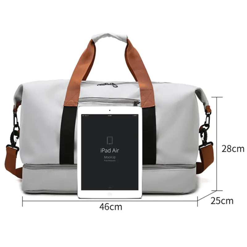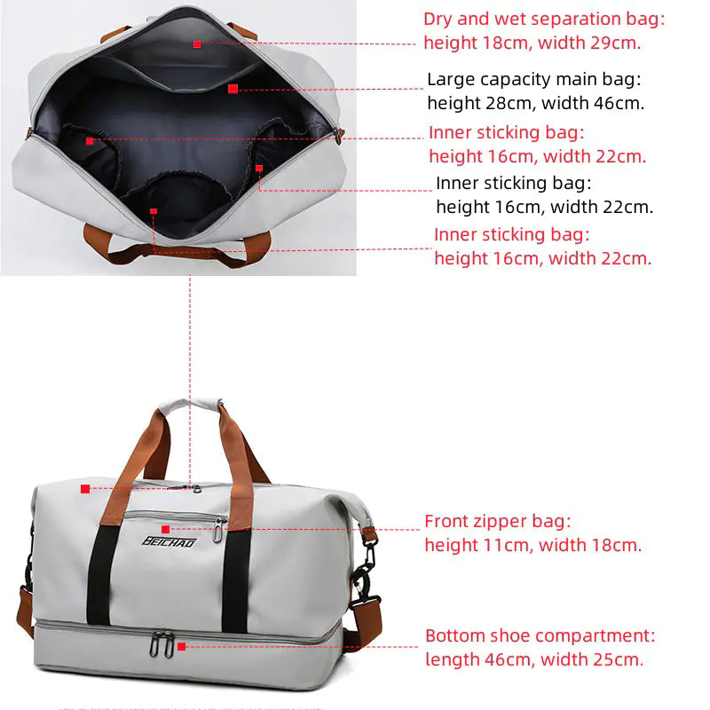 Constructed from durable Oxford cloth and lined with nylon, this bag is waterproof and wear-resistant, ensuring that your belongings stay dry and safe no matter the conditions. Its innovative dry and wet separation feature allows you to keep your wet gear separate from your dry items, making it an ideal choice for gym-goers and travelers alike.