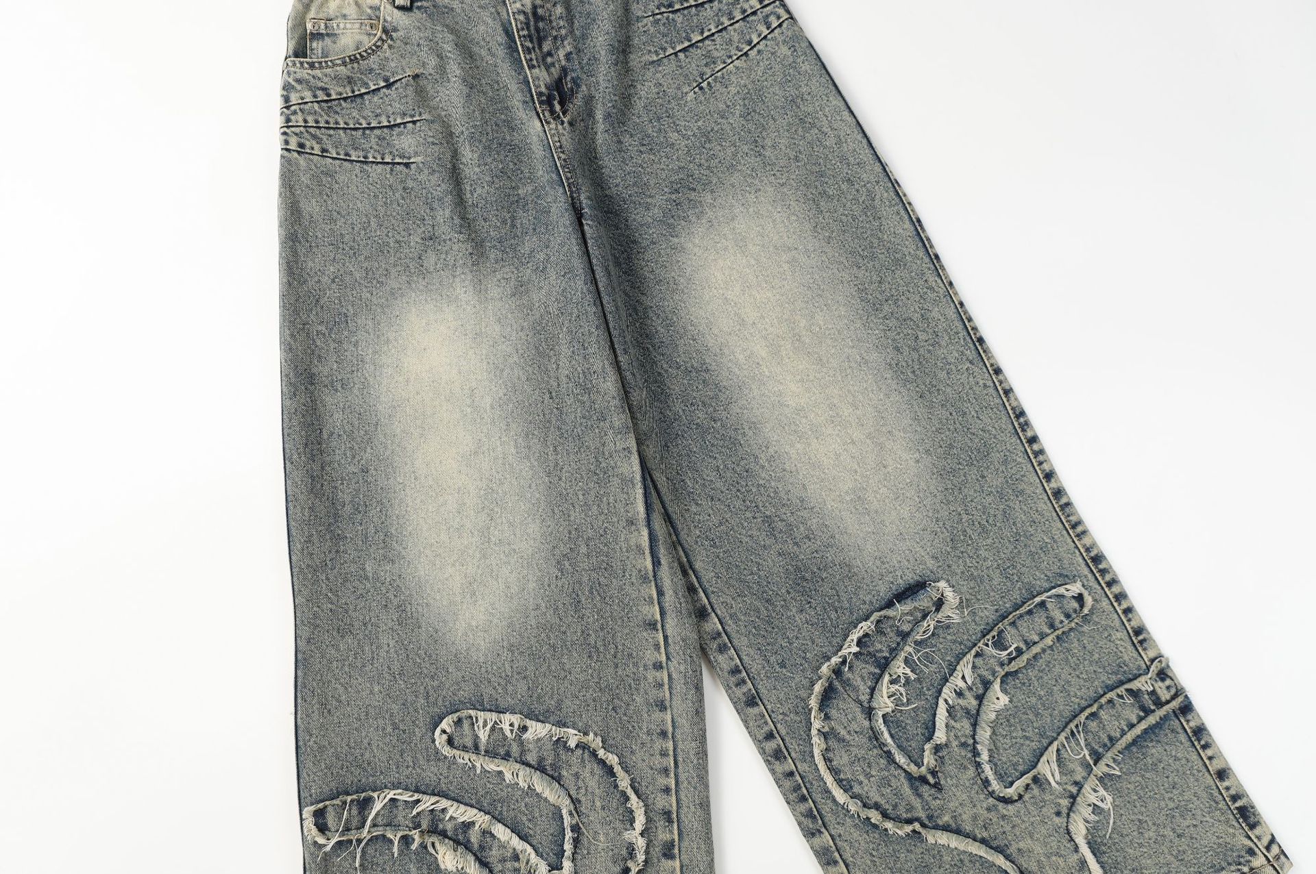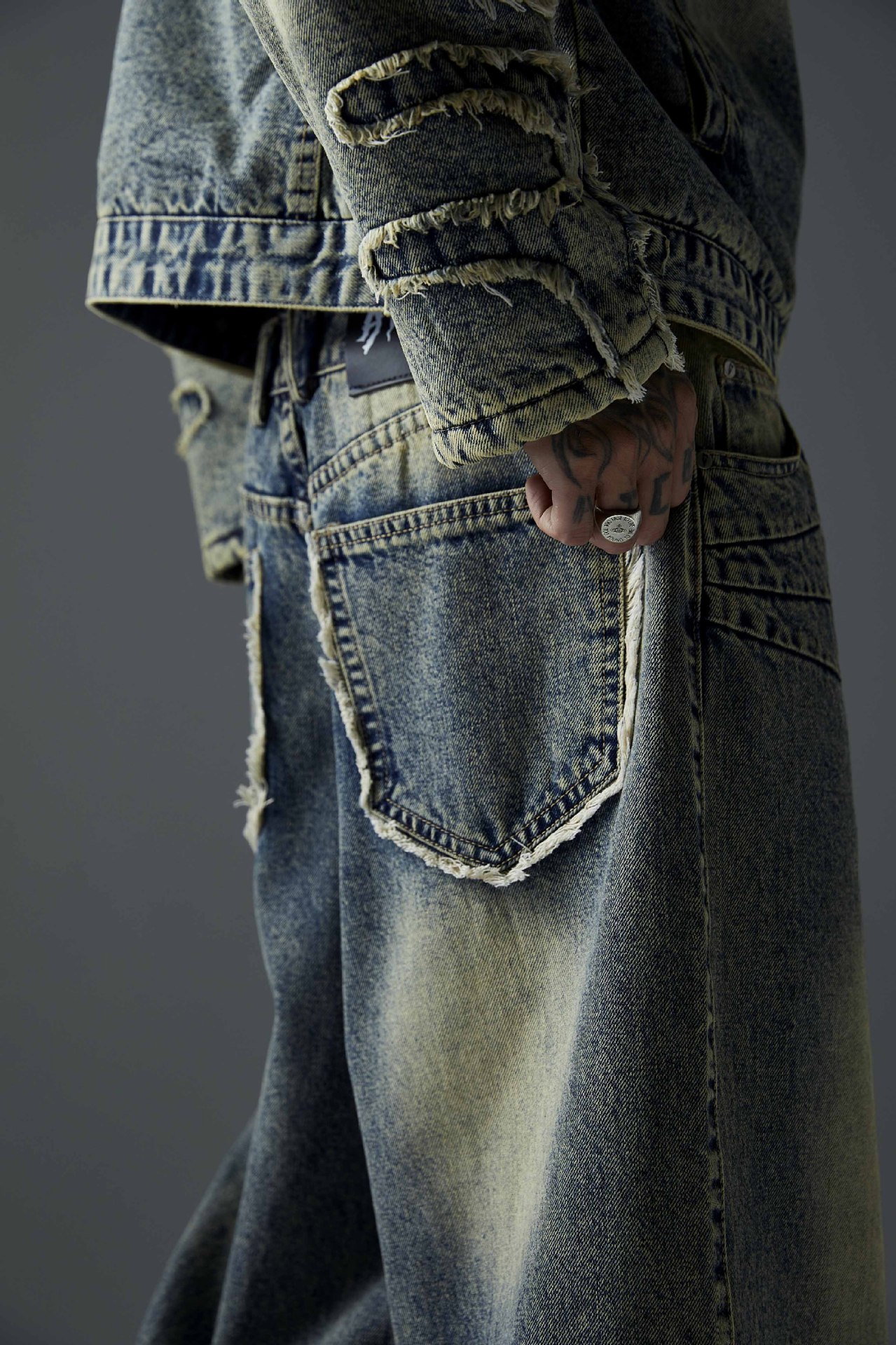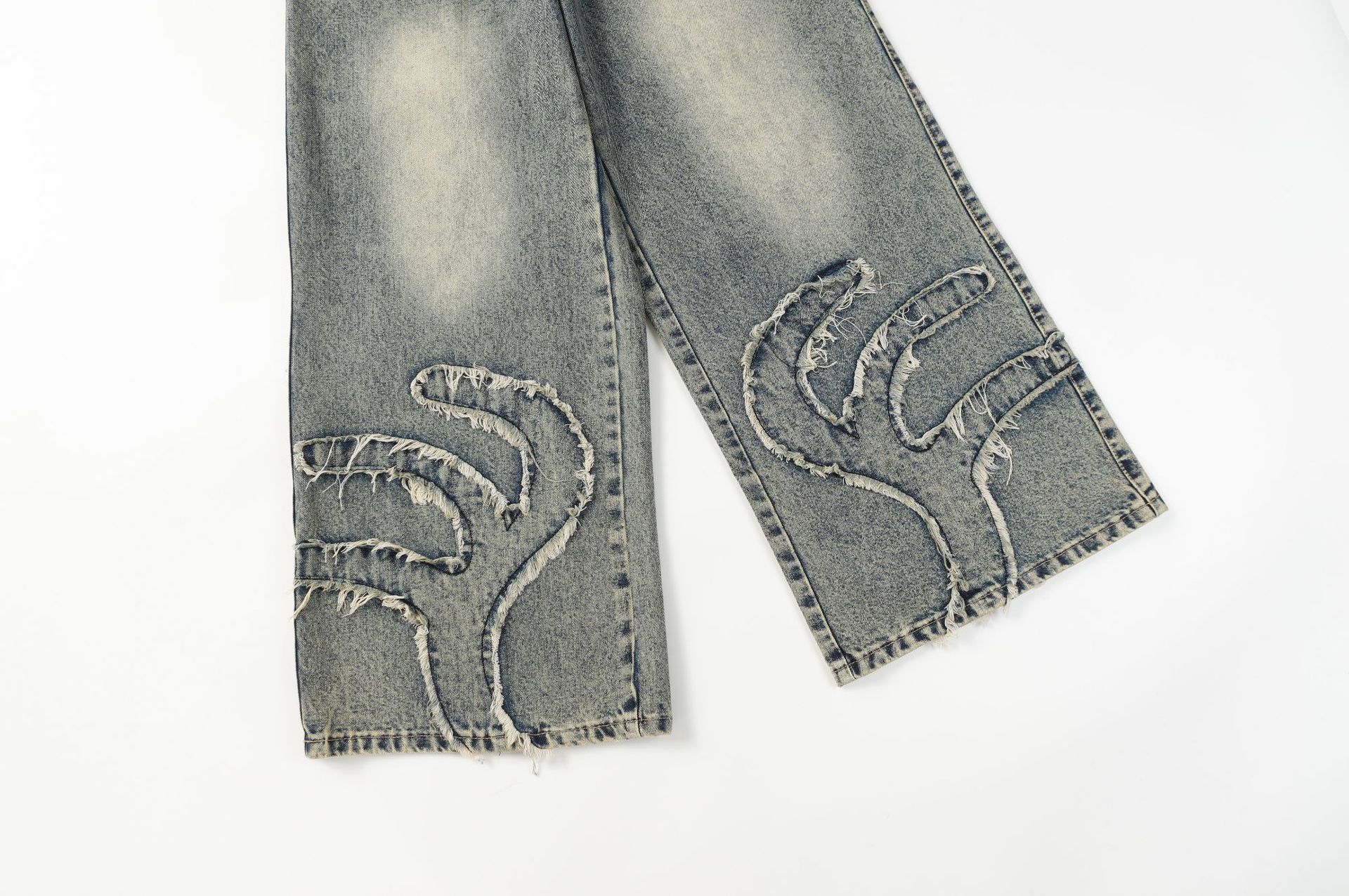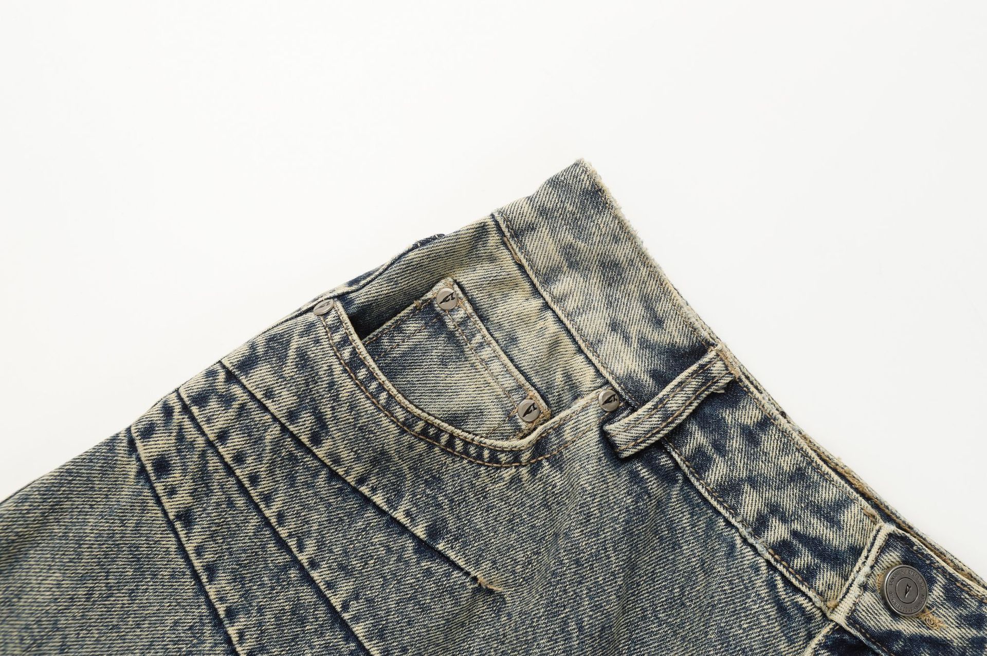 Heavy Straight Jeans with Street Wash and Worn Finish