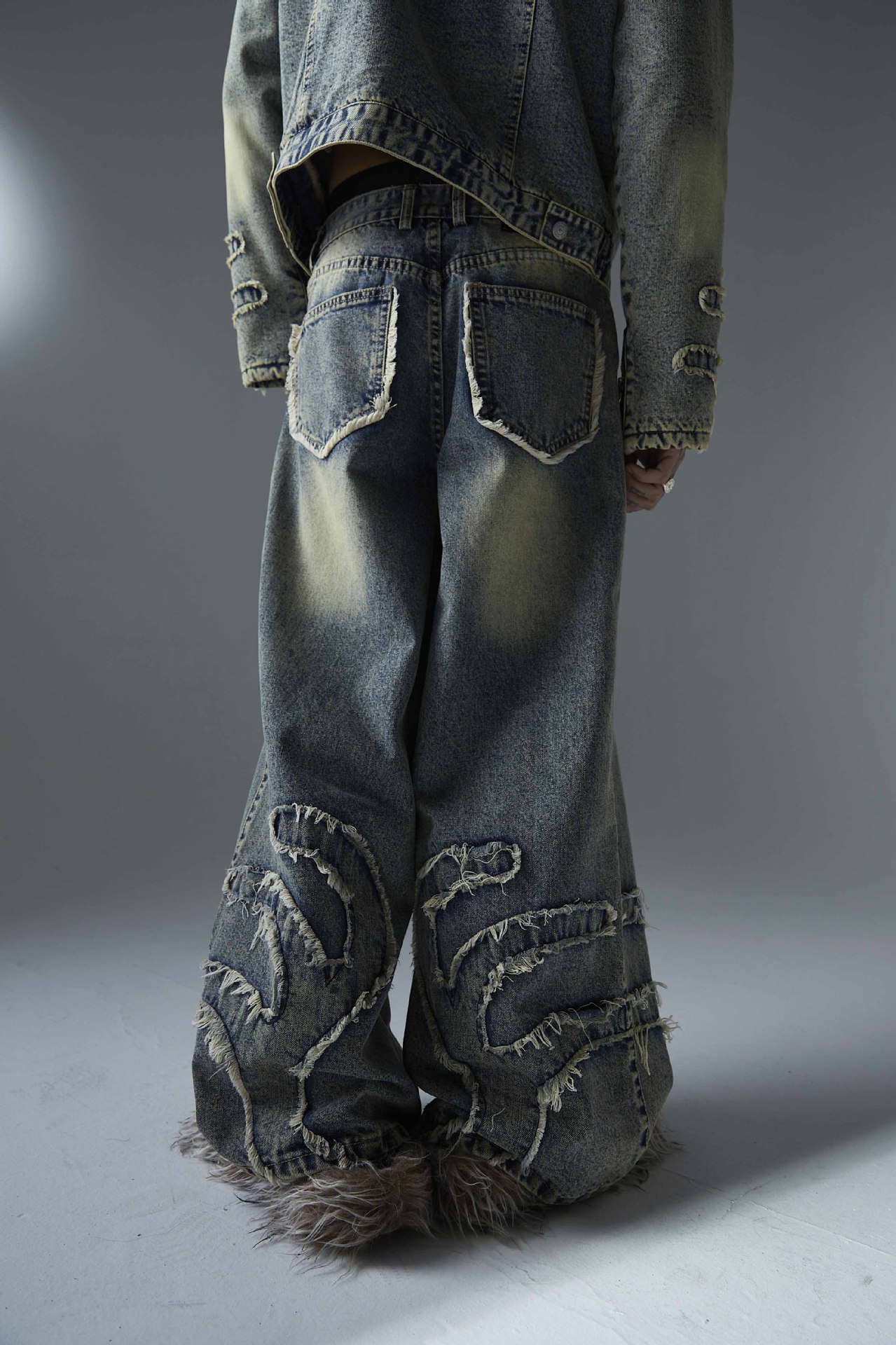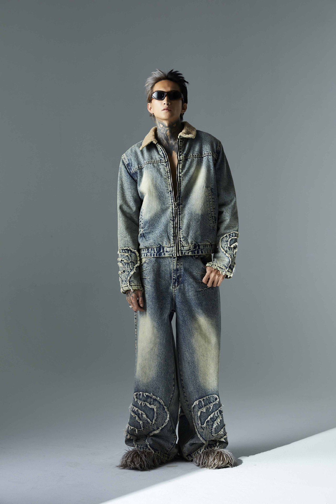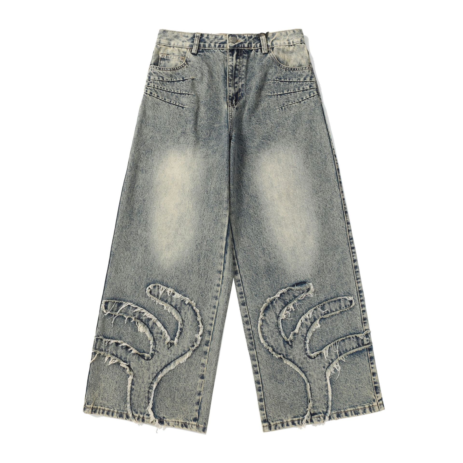 Heavy Straight Jeans with Street Wash and Worn Finish