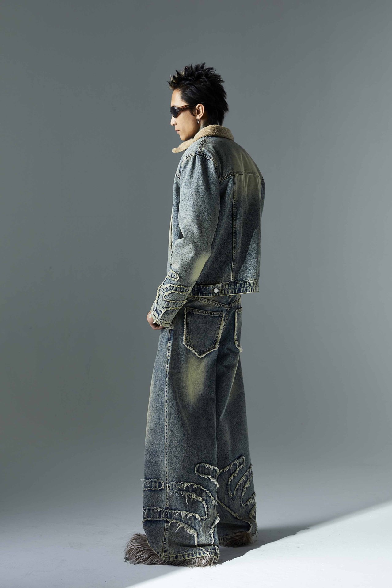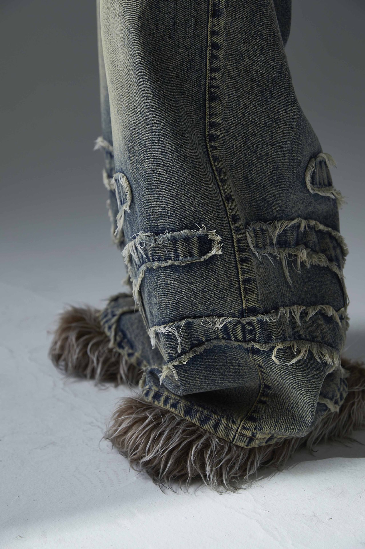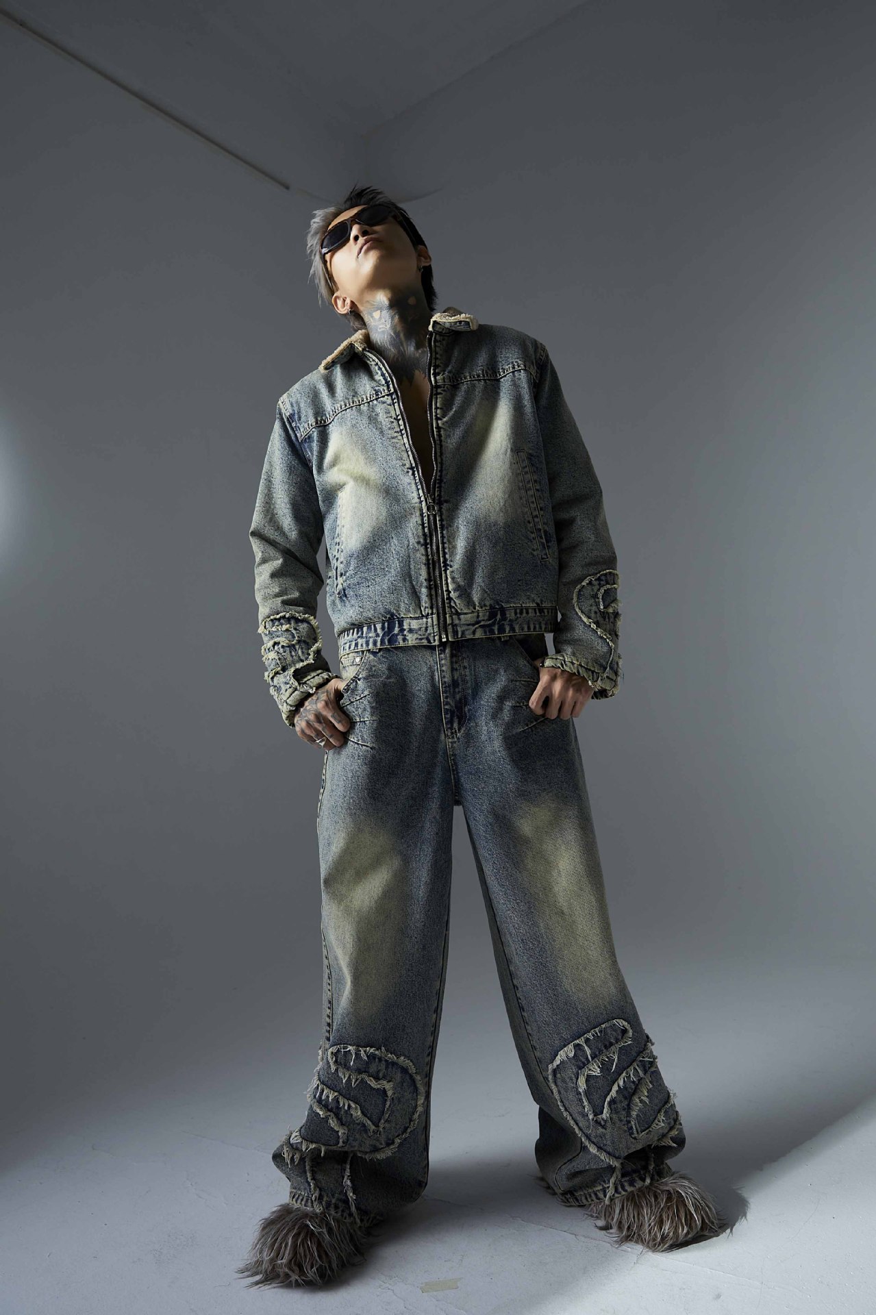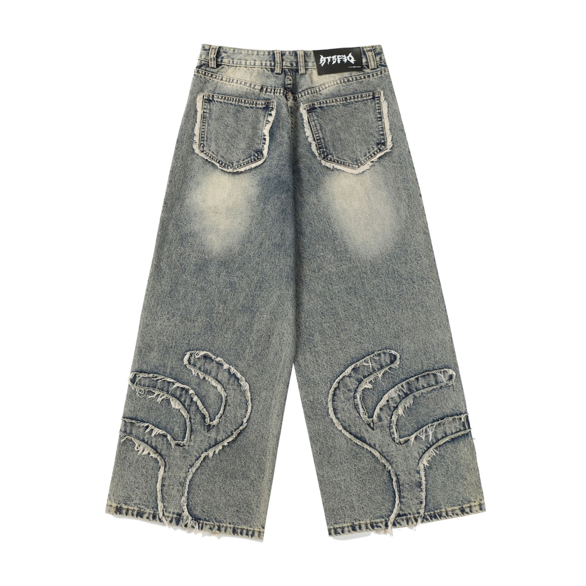 Heavy Straight Jeans with Street Wash and Worn Finish