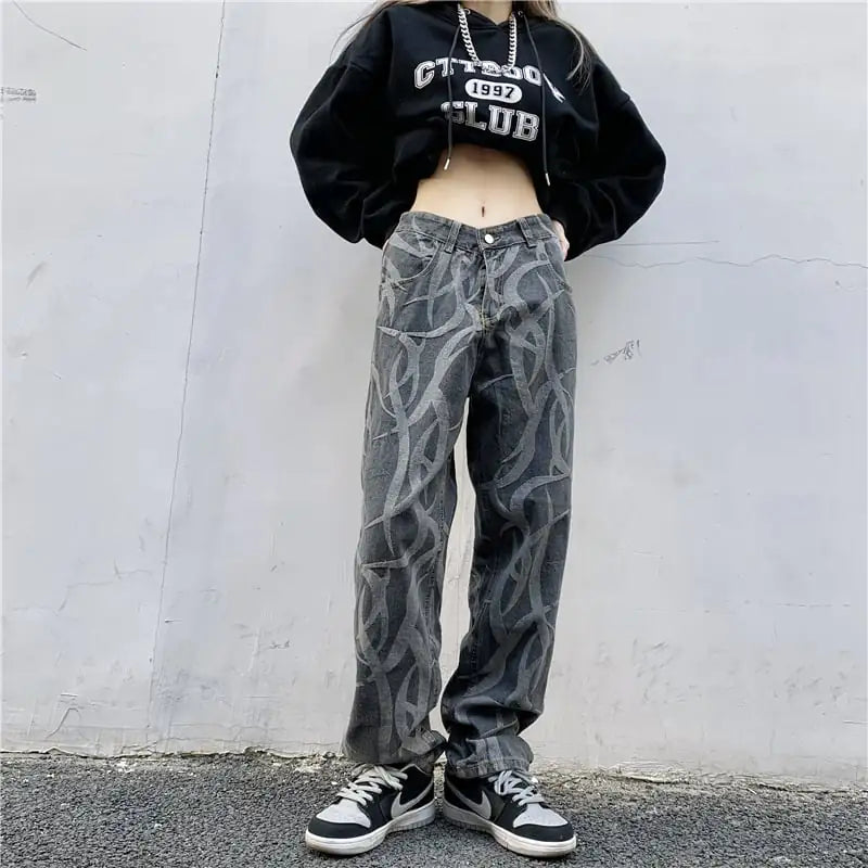 Elevate your street style with our High Waist Straight Hip Hop Trousers, designed for those who dare to make a statement. Crafted from premium denim, these trousers combine comfort and style seamlessly. The high waist design not only flatters your silhouette but also provides a chic look that pairs perfectly with any outfit.