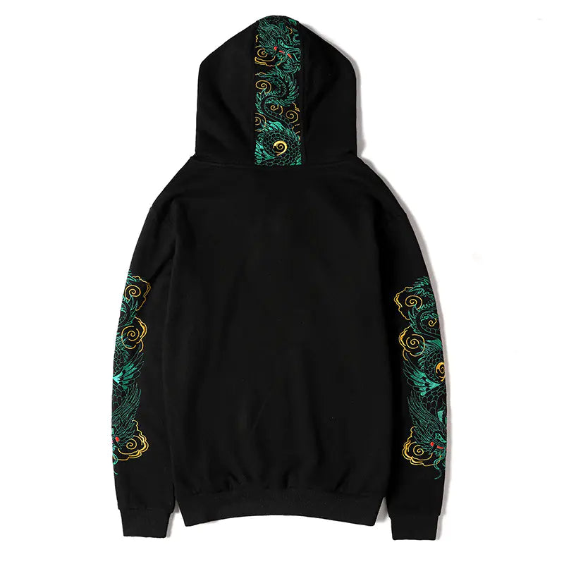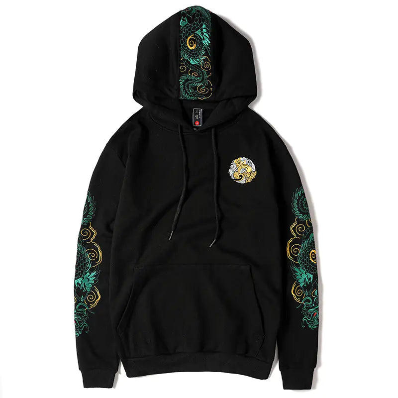 Featuring a striking dragon embroidery, this hoodie embodies a unique blend of traditional artistry and modern streetwear aesthetics. The loose fit and hood provide a relaxed vibe, perfect for layering during the cooler months.