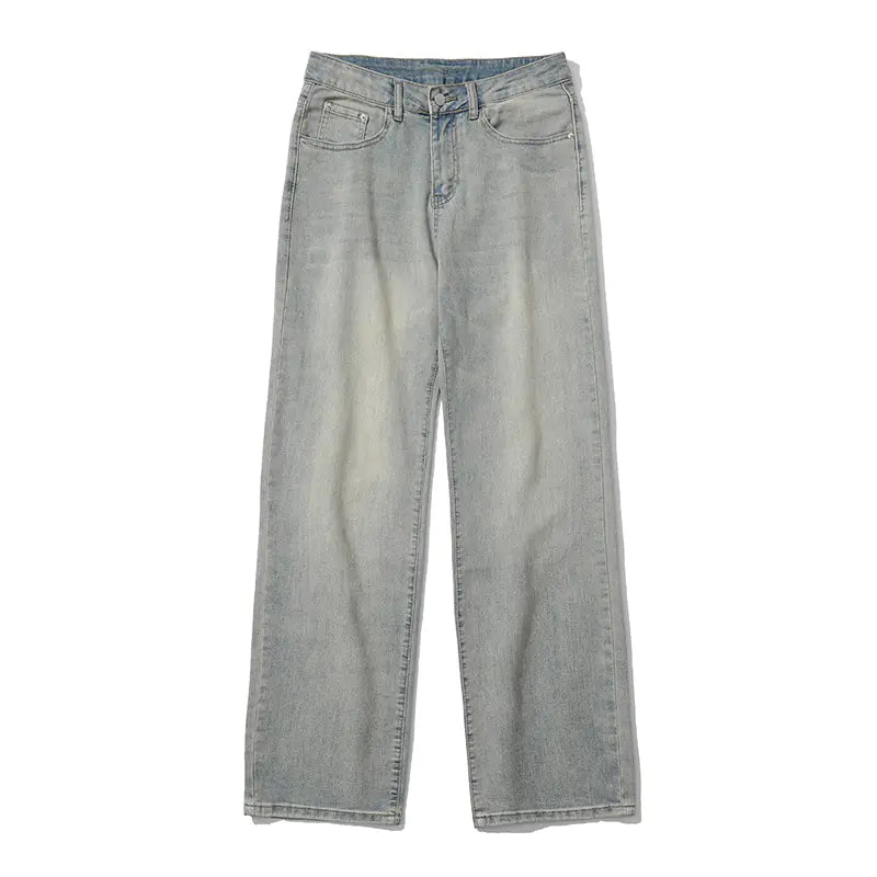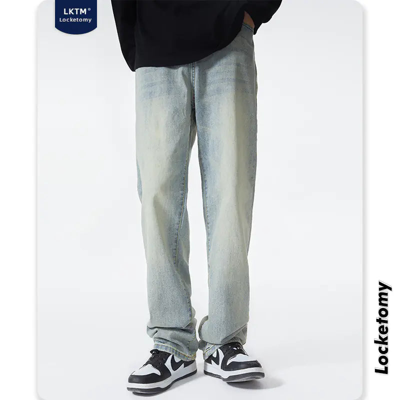 LKTM Men's Yellow Retro Loose Straight Wide-leg Jeans