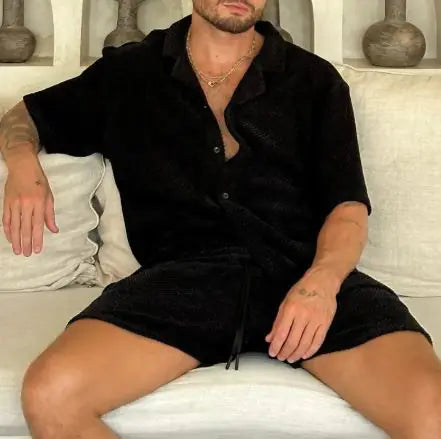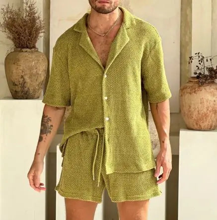 This Men's Breathable Casual Button Knitted Set combines casual style with practicality, making it a go-to for warm-weather comfort.