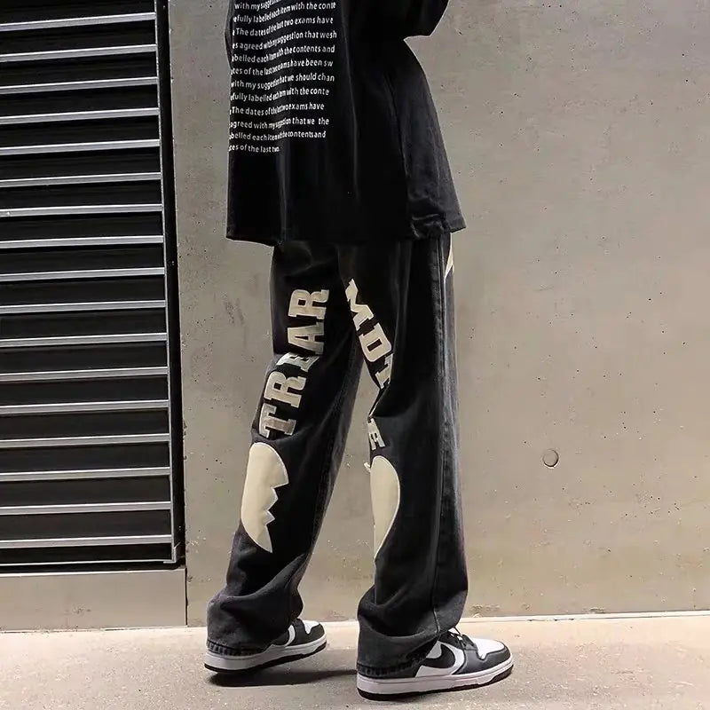 Men's Harajuku Stretch Waist Loose Patch Jeans