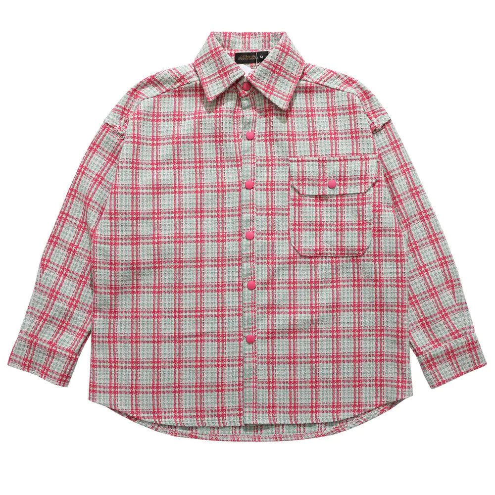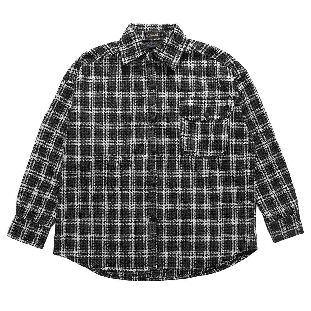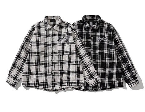 Men's Long Sleeve Plaid Shirt with Letter Embroidery