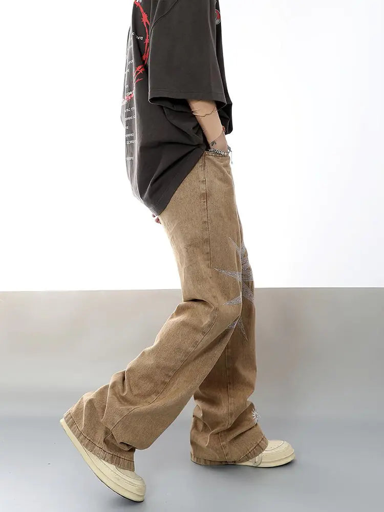 Men's Loose Fit Hip Hop Star Embroidered Jeans