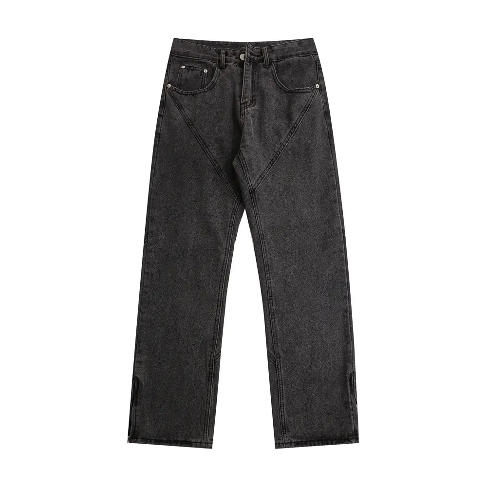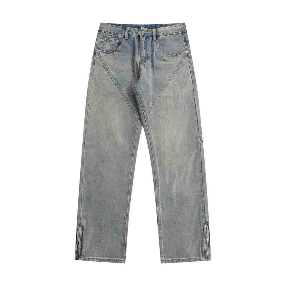 Men's Patchwork Washed Denim Straight Leg Jeans