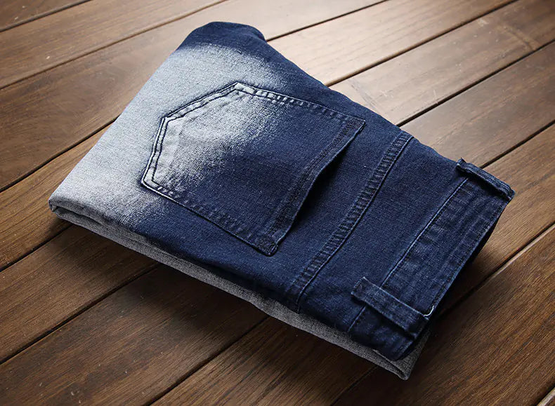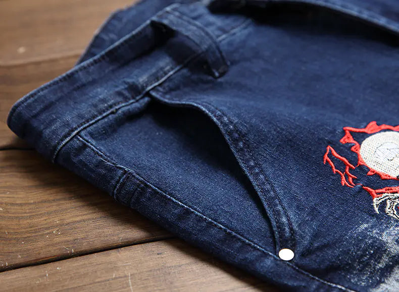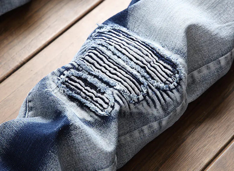 Men's Plus Size Stretch Motorcycle Patch Jeans