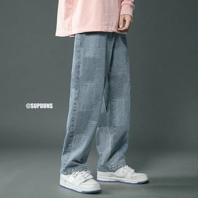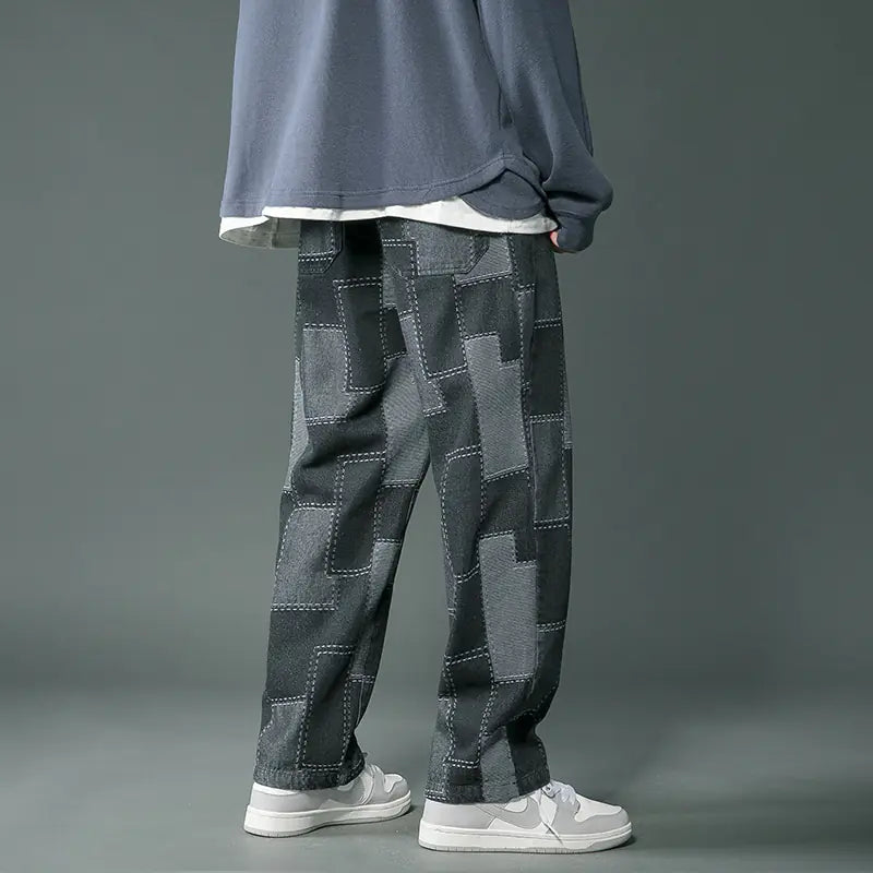 Step into the world of urban fashion with our New Men's Retro Geometric Splicing Hip-Hop Jeans. Designed for the modern trendsetter, these jeans combine comfort and style, making them a perfect choice for any streetwear enthusiast.