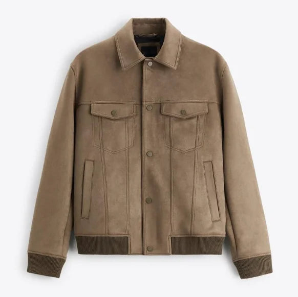 Stylish men's commuter jacket made from suede velvet with a British-inspired design. Available in light gray and mink colors, it features a comfortable spandex fabric and long sleeves. Please note: Asian sizes are 1-2 sizes smaller than US/EU sizes. See size chart for details.