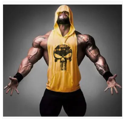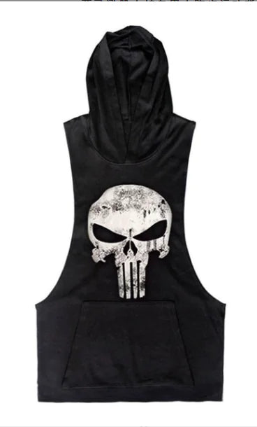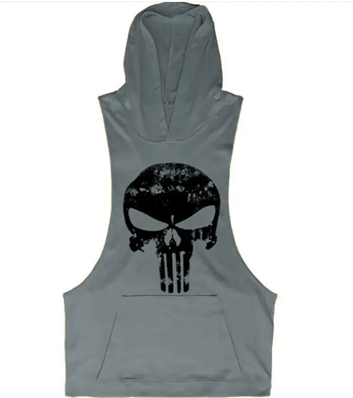 Men's Summer Vest with Skull Pattern Gym Hoodie