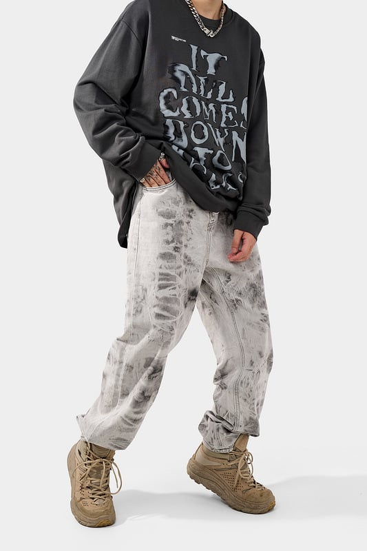 Don’t miss out on the opportunity to showcase your personal style! Check out the stunning visuals of our jeans below, highlighting their vibrant tie-dye pattern and impeccable fit.