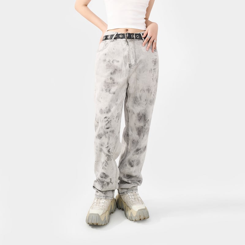Featuring a mid-waist fit and a convenient zipper placket, these jeans provide a flattering silhouette. The straight-leg design ensures a timeless look while allowing for easy movement. With a versatile gray color, they can be paired effortlessly with any top or footwear.