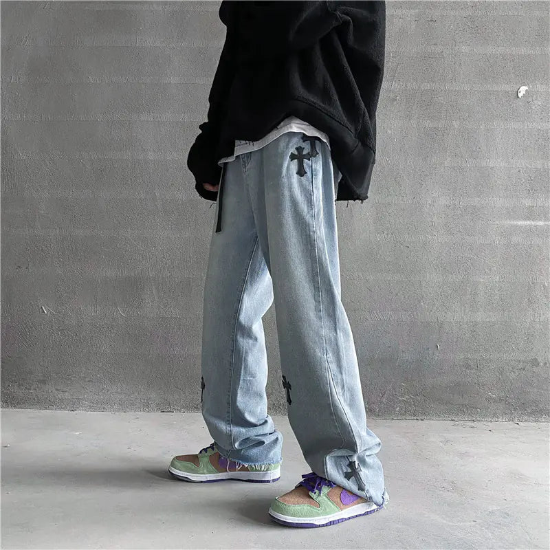 Available in two classic colors, Black and Blue, these jeans come in a variety of sizes ranging from S to 3XL, ensuring the perfect fit for everyone. The straight-leg and wide-leg design not only adds a relaxed vibe to your outfit but also provides unmatched ease of movement, making them ideal for daily wear or a night out.