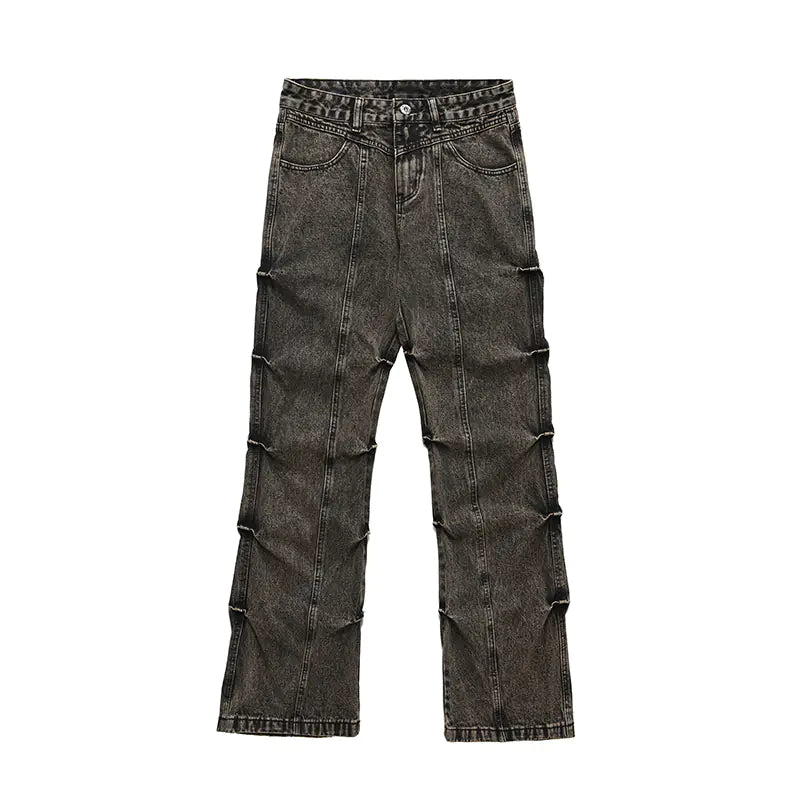 Featuring a trendy gray color, these jeans exhibit a fashionable worn-out look that gives you a distinct edge. The zipper fly opening ensures a snug fit, while the loose straight style offers versatility for any occasion—whether you're dressing up or going casual.