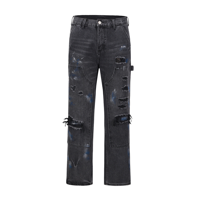 Featuring a modern zipper placket for easy wear, these jeans are designed to fit seamlessly into your daily wardrobe. The unique ink splatter design adds a trendy flair, while the ripped details give them an edgy look that stands out. Pair them with your favorite tee or jacket for a complete look that exudes confidence.