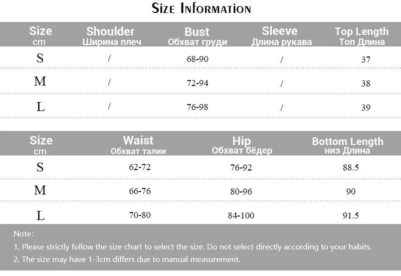 Includes short-sleeved top and high-waist trousers.