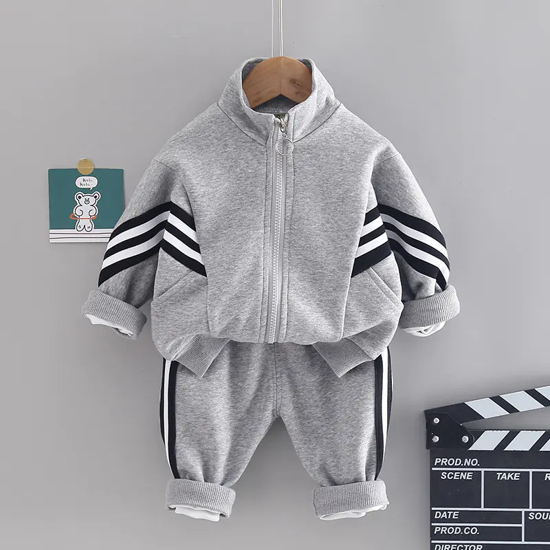 Introducing our stylish two-piece activewear set for boys, designed to keep your little ones comfortable and fashionable during their playtime adventures! This trendy outfit is perfect for the spring and autumn seasons, ensuring your child stays cozy while looking effortlessly cool.