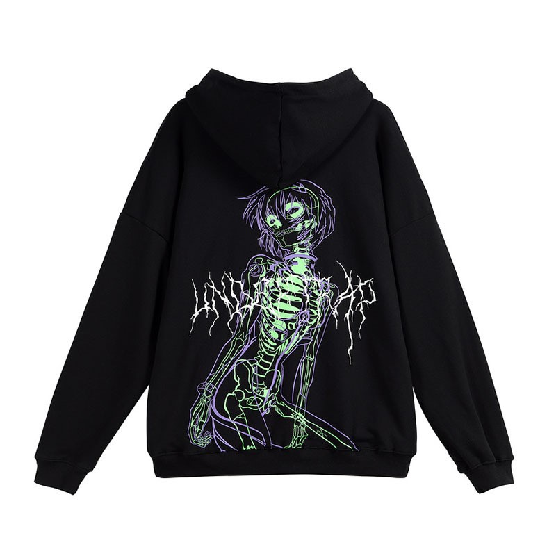 The loose fit design ensures unrestricted movement, while the eye-catching skull print adds a bold statement to your outfit. Whether you're hitting the streets or lounging with friends, this hoodie is your go-to for a casual, yet stylish look.