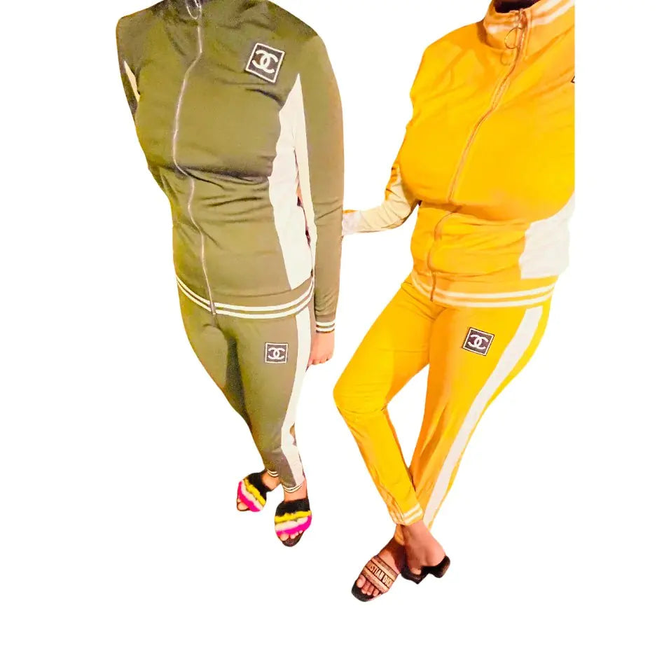 Two Pieces Tracksuit Zipper Top Sport Suit