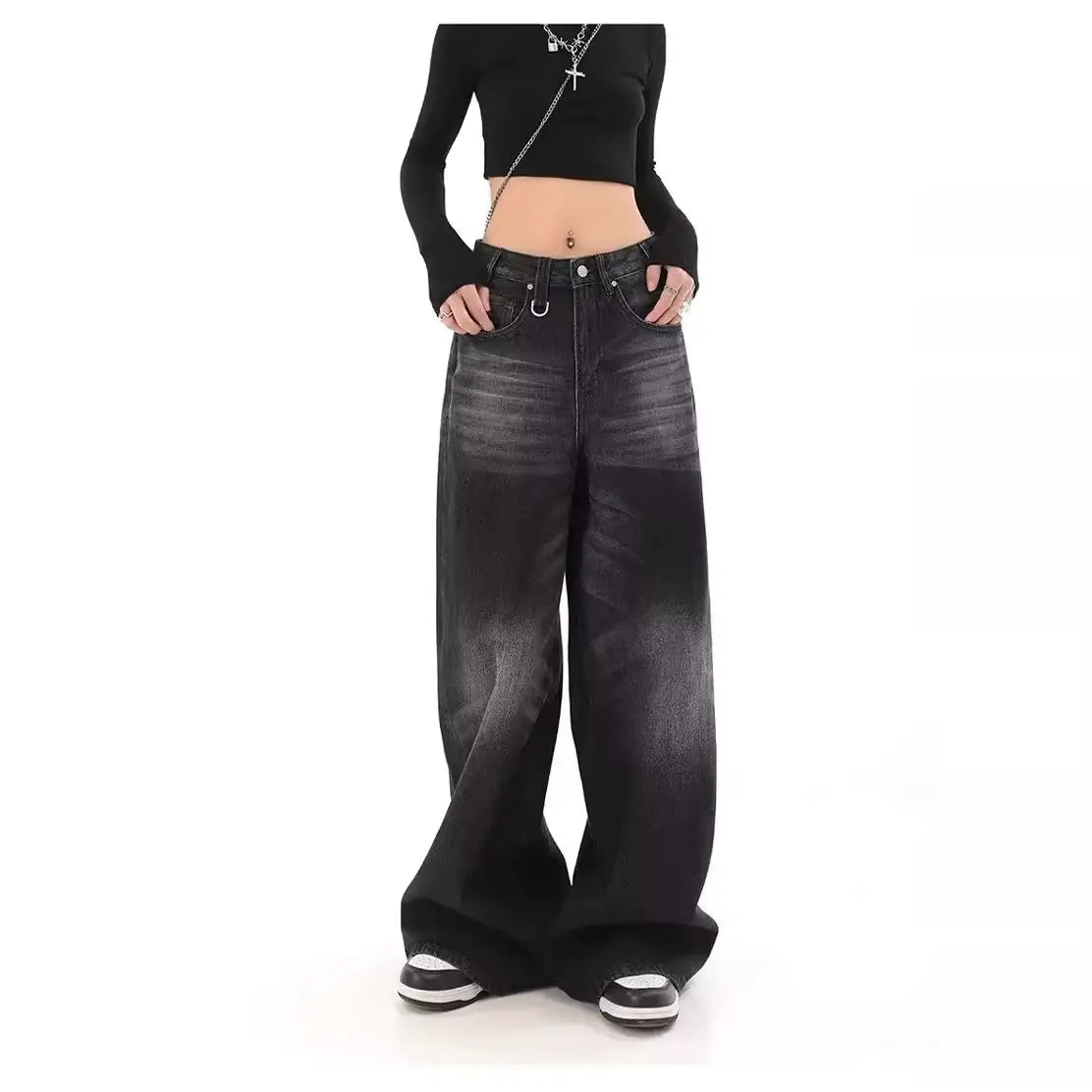 Step out in style this autumn with our vintage washed black wide-leg jeans. Designed for the modern woman, these jeans feature a high-waisted fit that effortlessly combines comfort and elegance. The relaxed straight-leg silhouette is perfect for creating a chic, laid-back look while still being fashion-forward.