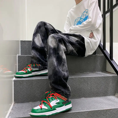 Men's Loose Straight Tie-Dye Jeans with Wide Legs