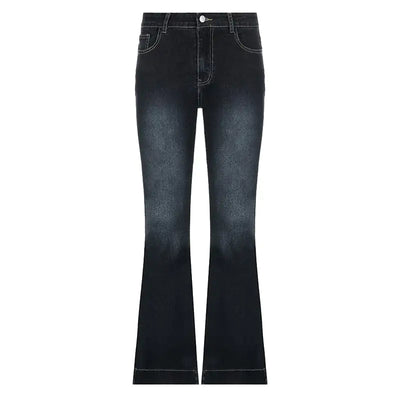Trendy Distressed Blue Straight-Leg Jeans with Ink Details
