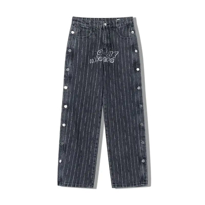Women's Straight Trousers Embroidered Side Frayed Butterfly Jeans Street Design Hot Girl Baggy Pants