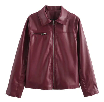 Women's Leather Jacket with Standing Collar (Single Piece)