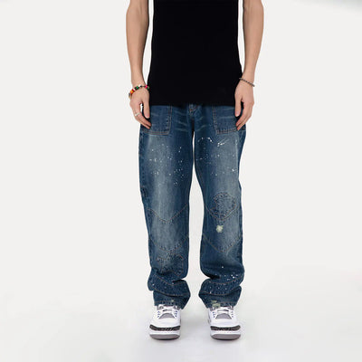 Vintage Washed Old Ink Splash Jeans for Street Style