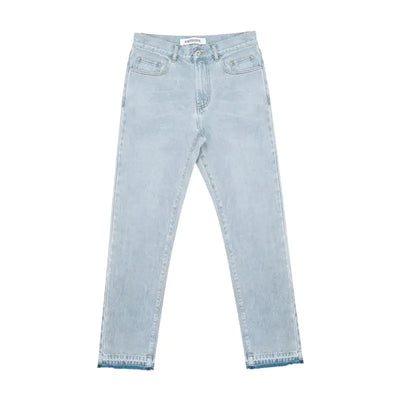 Men's Light-Colored Embroidered Patch Straight-Leg Jeans