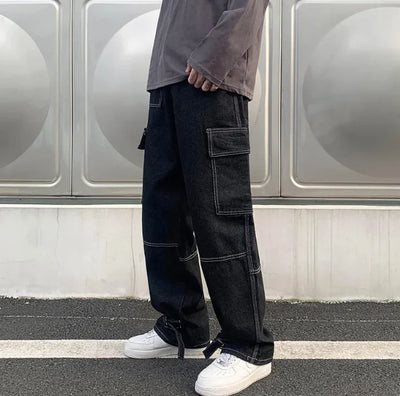 Vintage Washed Wide-Leg Jeans for Men (One Piece)