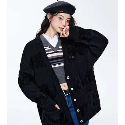 Vintage Knitted Sweater Cardigan for Women, Striped