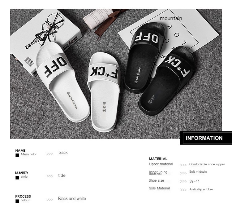 Men's Slide Sandals, Couples' Slippers, Black and White