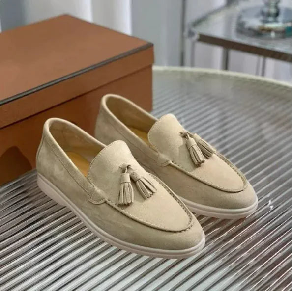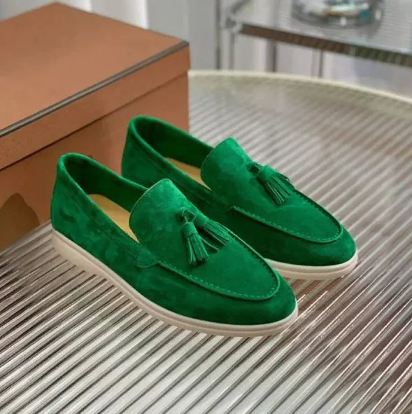 Step out in style with these suede tassel slip-on loafers. Combining comfort and elegance, they are perfect for casual or semi-formal wear. Easy to slip on and effortlessly fashionable, these loafers are a must-have for any wardrobe